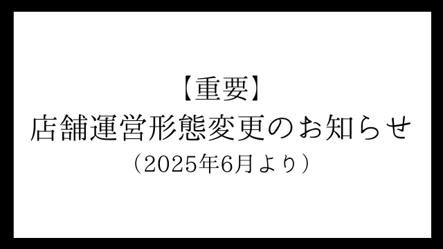 このたび、2025年6月1日(日)より店舗の運営形態を「無人営業」に変更することとなりました。